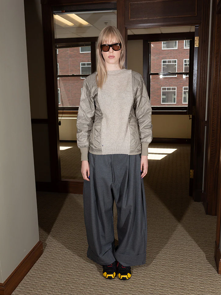 This series called Liningknitter are all one of a kind. Bless makes the knit, and inserts them into gently puffed jacket linings, making a whole new beast. Super light Shetland wool. Unisex.